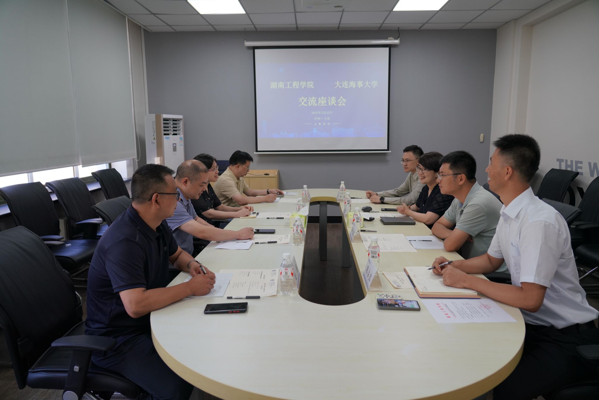 7月15日下午,湖南工程学院国际教育学院(国际交流中心)党委书记魏坚,副院长林愿,党委副书记连泰一行来我校调研中外合作办学工作。大连海事大学休斯顿国际学院党委书记、院长张金蕾,党委副书记、副院长李德波,副院长王肇贵会见魏坚一行并座谈交流。